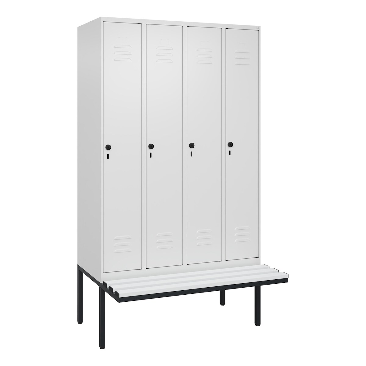 C+P Spind Classic PLUS, Kunststoff schwebende Sitzbank, 4 Abteile, HxBxT 212x120x82cm, Sicherheitsdrehriegel, Verkehrsweiß von PROREGAL
