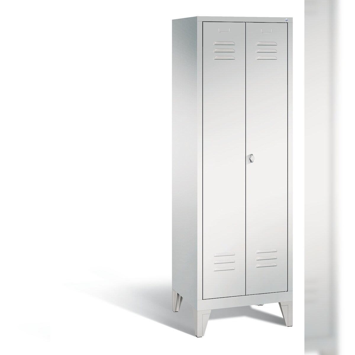 C+P Spind Classic mit Füßen | 2 Abteile mit Mitteltrennwand & 5 Fachböden | HxBxT 185x30x50cm | Lichtgrau von PROREGAL