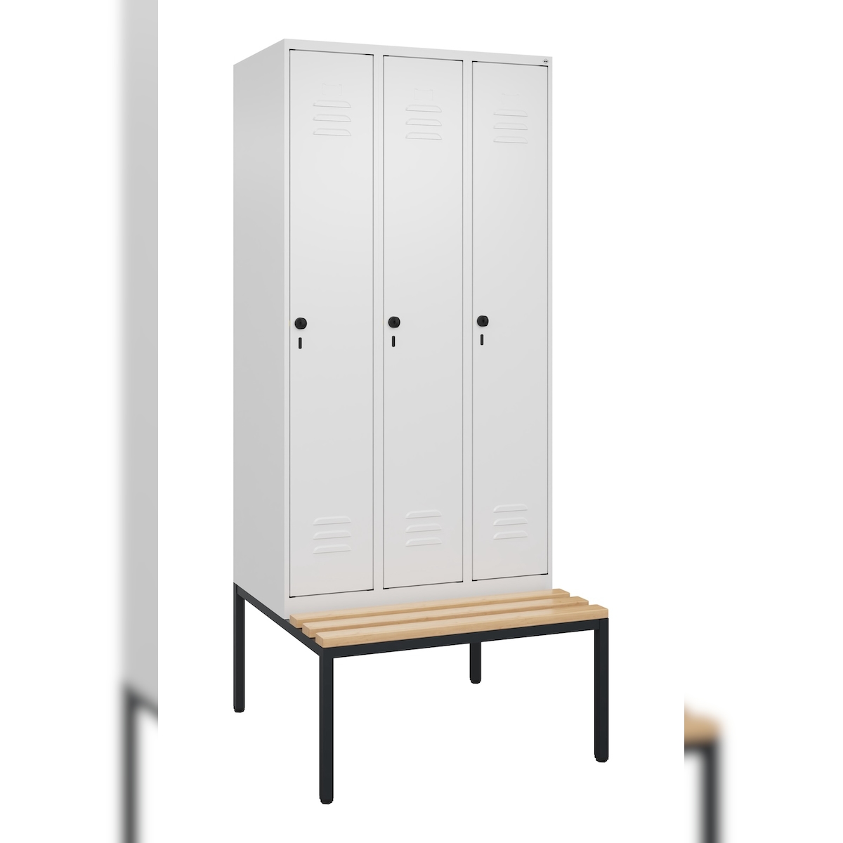 C+P Spind Classic PLUS, Buche untergebaute Sitzbank 3 Abteile, HxBxT 212x90x82cm, Sicherheitsdrehriegel, Verkehrsweiß von PROREGAL