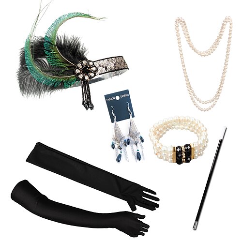Set Retrò Vintage Anni Ruggenti Anni 1920 Fascia Flapper Copricapo Set di accessori Il grande Gatsby Ragazza Flapper Piuma Costume Per donna Natale Carnevale Mascherata Festa a tema retrò Danza