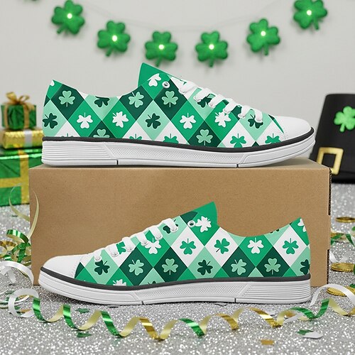 Sneakers casual in tela da donna a tema irlandese per San Patrizio: scarpe traspiranti con lacci per le vacanze, perfette per passeggiate, feste, viaggi e abbigliamento primaverile quotidiano