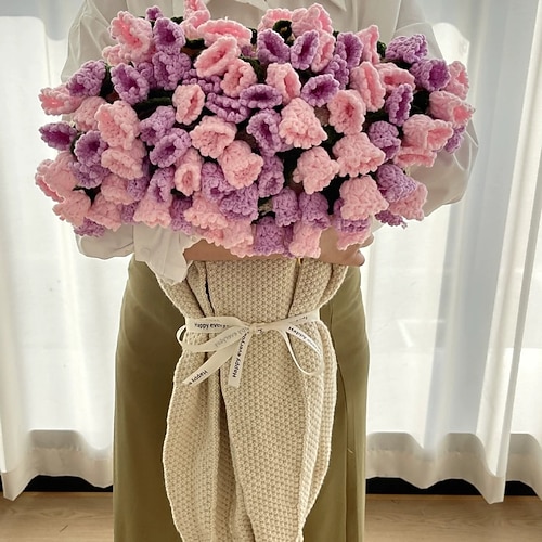 Coperta con bouquet di mughetti viola sfumati per San Valentino, coperta con fiori finti fatta a mano, coperta da notte, coperta in tessuto artificiale, regalo perfetto per i propri cari