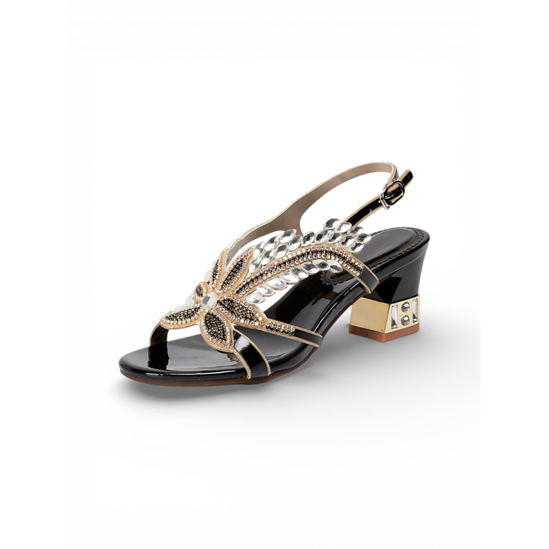Women's Black Strappy Mesh Dance Heels with Buckle Closure – Elegant Open-Toe Shoes for Ballroom, Latin, and Special Events