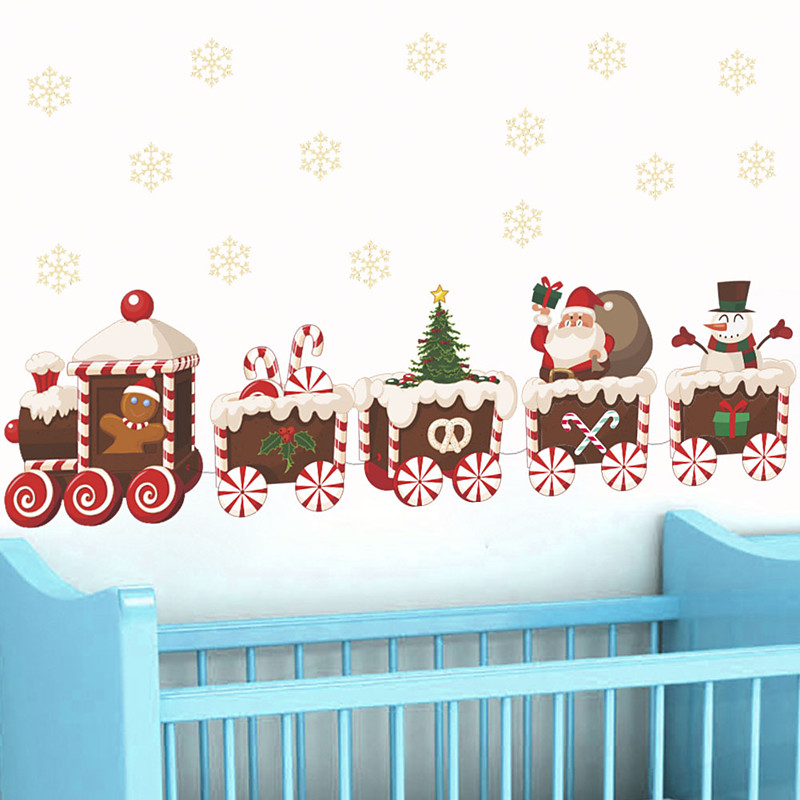 Christmas Wall Sticker Santa Claus Snowflake Cartoon Train Design Removable Wall Decal For Kids Room Living Room Bedroom Holiday Party Home Decoration Supplies