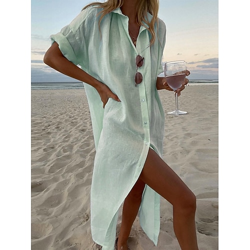 Per donna Abito maxi Misto cotone Abito Camicia Vestito Casual Essenziale Casual Quotidiano Vacanza Vestibilità regolare Semplice Manica Lunga Colletto a Camicia Bianco Verde chiaro Rosa Estate