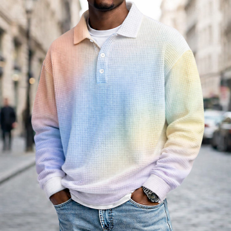 Men's Gradient Ramp Waffle Polo Shirts Long Sleeve Polo Shirts Lapel Sportswear Casual School Athleisure Daily Wear 3D Print Spring Fall Winter Blue Yellow Purple