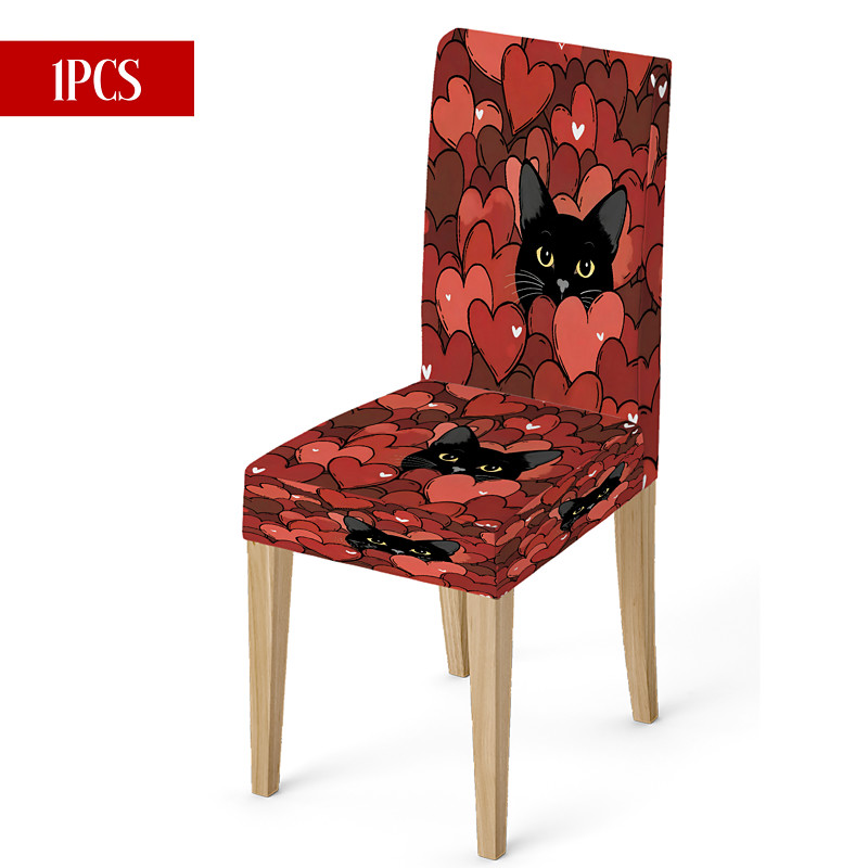 Valentine's Day Stretch Dining Chair Cover Black White Buffalo Check Heart Car Bowknot Chair Back Slipcover Washable Winter Home Restaurant Living Room Kitchen Decor 1/4/6 Pcs