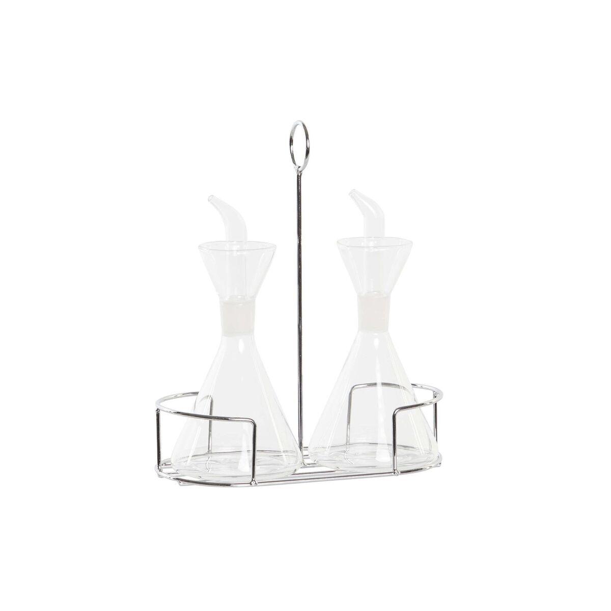 Olie- og eddikesæt 200 ml - 2 enheder i borosilikatglas med metalstativ (19,5 × 10 × 23,5 cm)