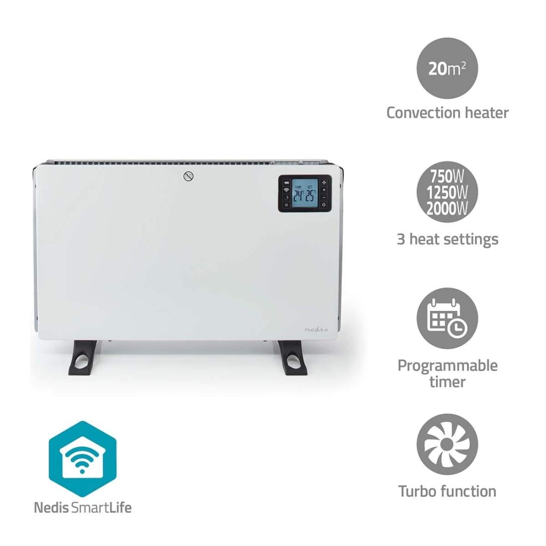 Nedis SmartLife Konvektionsheizgeräte - 2000 W - 3 Wärmeeinstellungen - LCD - 5 - 37 °C - Verstellbares Thermostat - Weiss