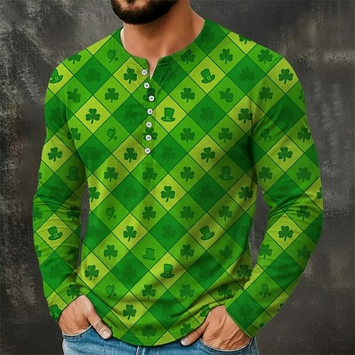 San Patrizio Per uomo Grafico Geometrico Trifoglio Maglietta Maglia Henley Camicia a Maniche Lunghe Manica Lunga maglietta Stampa 3D Henley Camicia Moda Essenziale Classico Quotidiano Vacanza Giorno