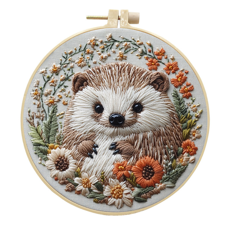 Embroidery Kit for Beginners, Cute Hedgehog Stamped Embroidery Patterns Kits for Adults with Hoop, Easy to Follow Sewing Thread Needlework
