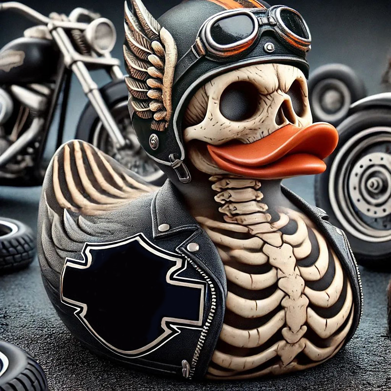 Halloween Skeleton Duck Figurine Resin Duck Statue, Biker Skull Duck Sculpture, Gothic Motorcycle Duck Decor for Home or Party Display