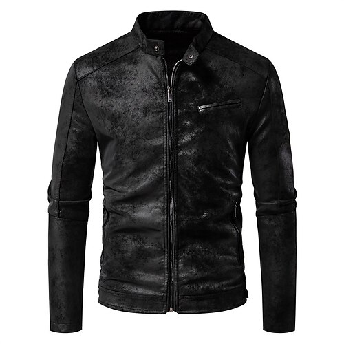 Men's Faux Leather Jacket Biker Jacket Motorcycle Jacket Daily Thermal Warm Rain Waterproof Zipper Fall Winter Solid Colored Punk Vintage Stand Collar Regular Black Blue Brown Coffee Jacket