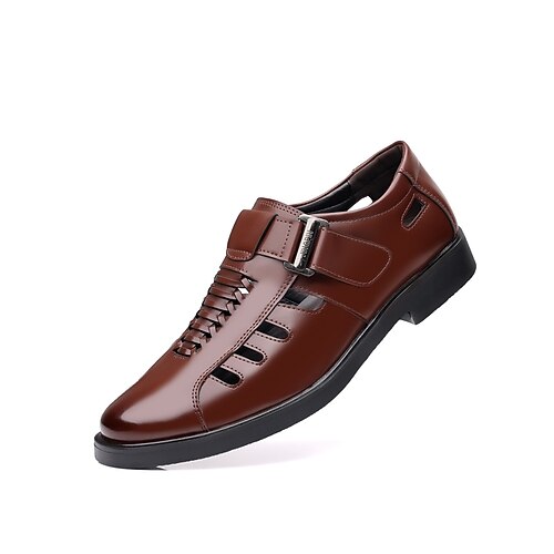 scarpe casual da uomo in similpelle marrone, cinturino con fibbia regolabile, vestibilità comoda, stile casual elegante, perfette per matrimoni in spiaggia ed eventi all'aperto