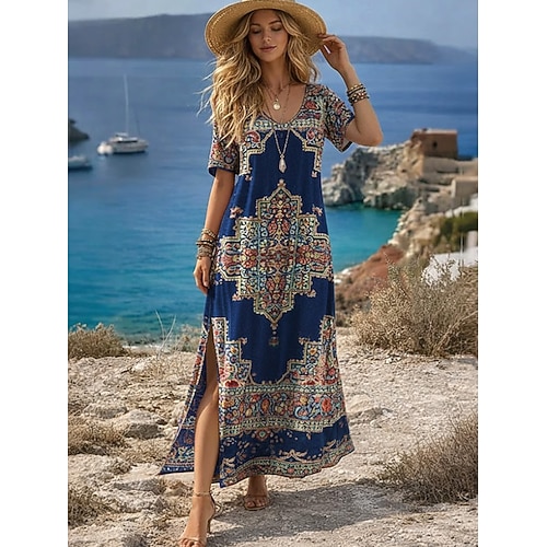 Per donna Abito maxi Abito a trapezio Casual Quotidiano Vestibilità comoda Grafico Geometrico Manica Corta Scollo a V Blu Verde chiaro Rosso Estate Primavera