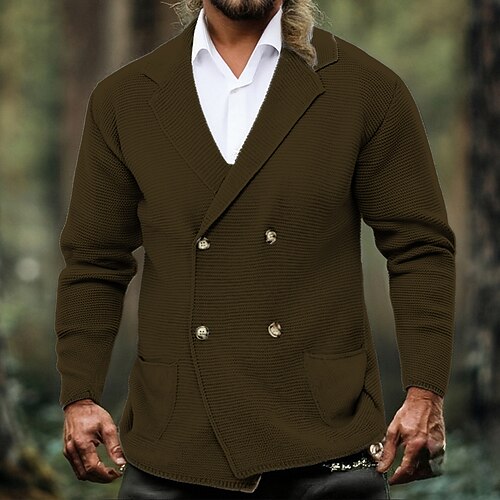 Per uomo Cardigan Maglione Corto Maglione a maglia Giacca cardigan A Coste Lavorato a maglia corto Maglia Top Regolari Tasca Colore Solido / Tinta Unita Colletto a Camicia Moda Classico Vacanza