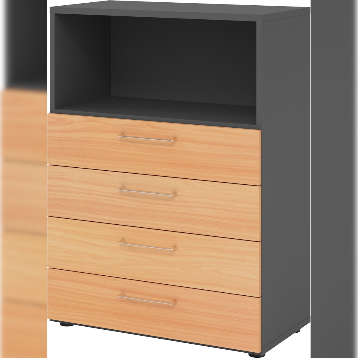 bümö smart Schubladenschrank, Büroschrank 80cm breit in Ahorn mit 4 Schüben & 4 Regalfächern - Bürocontainer aus Holz, Container mit Metallgriffen &