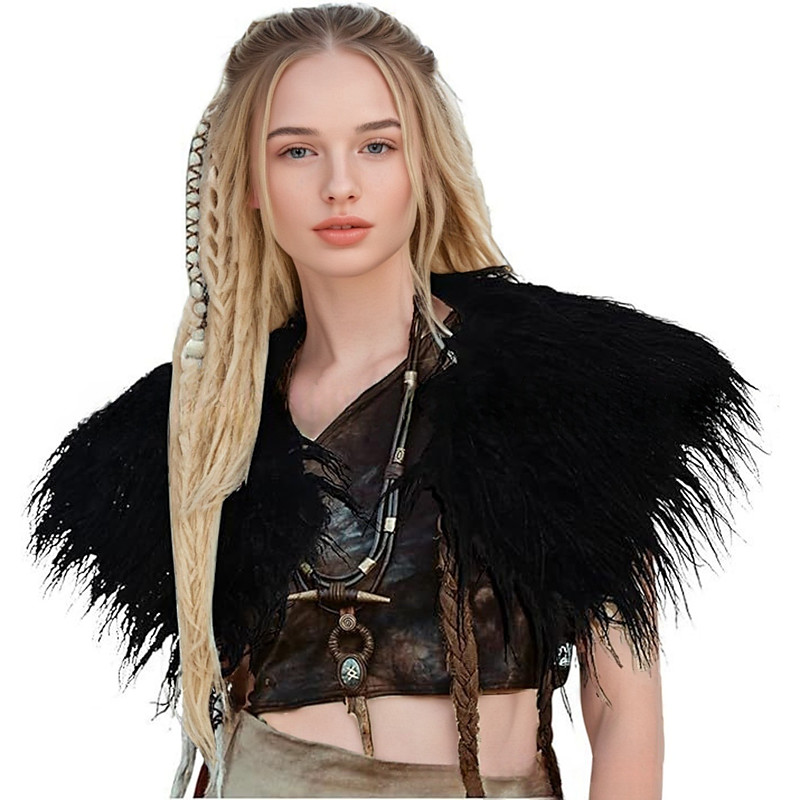 Retro Vintage Medieval Renaissance Cape Shawls Faux Fur Costume Warrior Viking Fancy Dress Women's Viking Halloween Carnival Performance Party LARP Adults Shawl