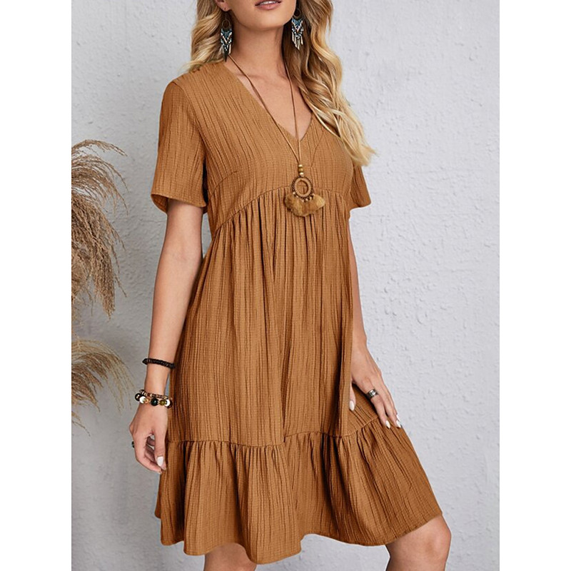 Women's Mini Dress Linen-Inspired Dresses Casual Dress Summer Dress Plain Dress Streetwear Basic Vacation Street Date Loose Fit Short Sleeve V Neck Black Red Purple Brown Summer