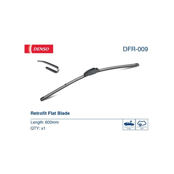 Pyyhkijänsulka, Etu, vasen, Keskellä, Etu, oikea Denso DFR-009 - chevrolet, citroën, hyundai, infiniti, kia, lada, lancia, mazda, mercedes-benz, mitsu
