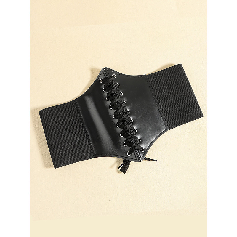 Brown Faux Leather Corset Belt for Women – Adjustable Lace-Up Waist Cincher with Vintage Buckle Design, Perfect for Dresses and Casual Outfits