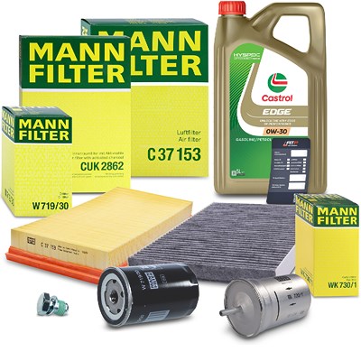 Mann-filter Inspektionspaket B+5L CASTROL EDGE FST 0W-30 [Hersteller-Nr. 10492905] für VW, Audi, Skoda