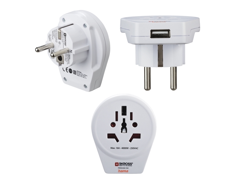 Hama World to Europe USB-reiseadapter, for 2- og 3-pinners enheter, 1x USB (00223475)