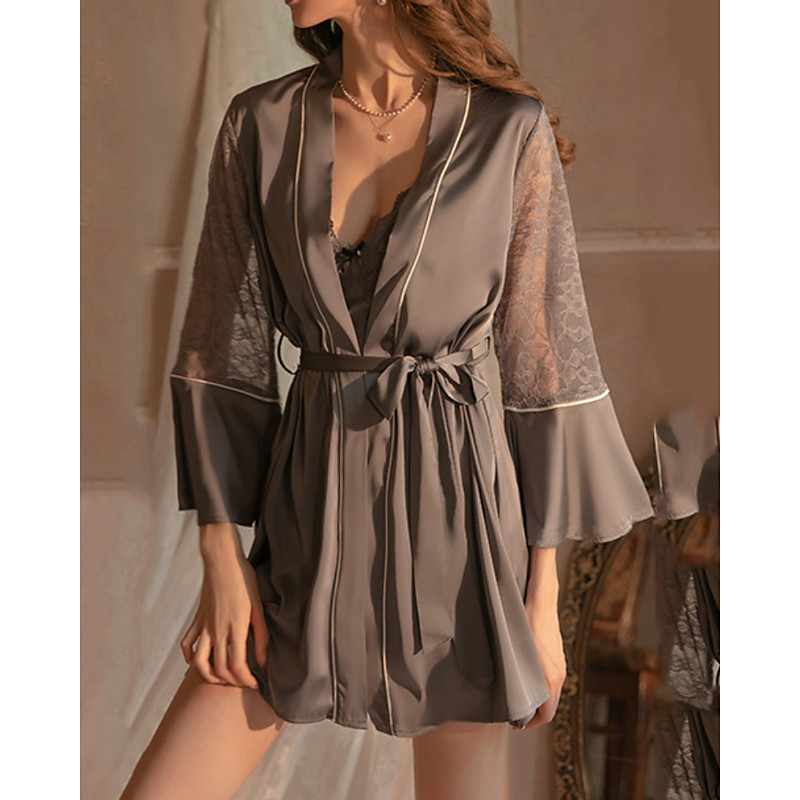 Women's Pajamas Robe Casual Soft Satin Pure Color Lace Daily Home Bed Sleeveless Straps Black White Wine Gold Dark Gray Summer Loose Fit