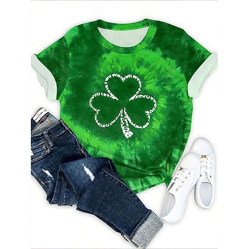 Maglietta Donna St. Patrick's Day Grafica Shamrock Vintage Stile Casual Manica Corta Collo Giro Regolare Tops Stampa Quotidiana Bianco Verde Estate Primavera