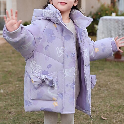 Kinder Mädchen Daunenjacke Outdoorjacke Daunenjacke Herz Sport Tasche warm halten Winddicht Outdoor Mantel Oberbekleidung Ab 4 Jahren Winter Rosa Purpur