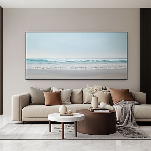 grande dipinto originale sul mare, dipinto astratto blu e grigio sul mare, dipinto astratto sul paesaggio della spiaggia, dipinto sul cielo, arte murale per soggiorno