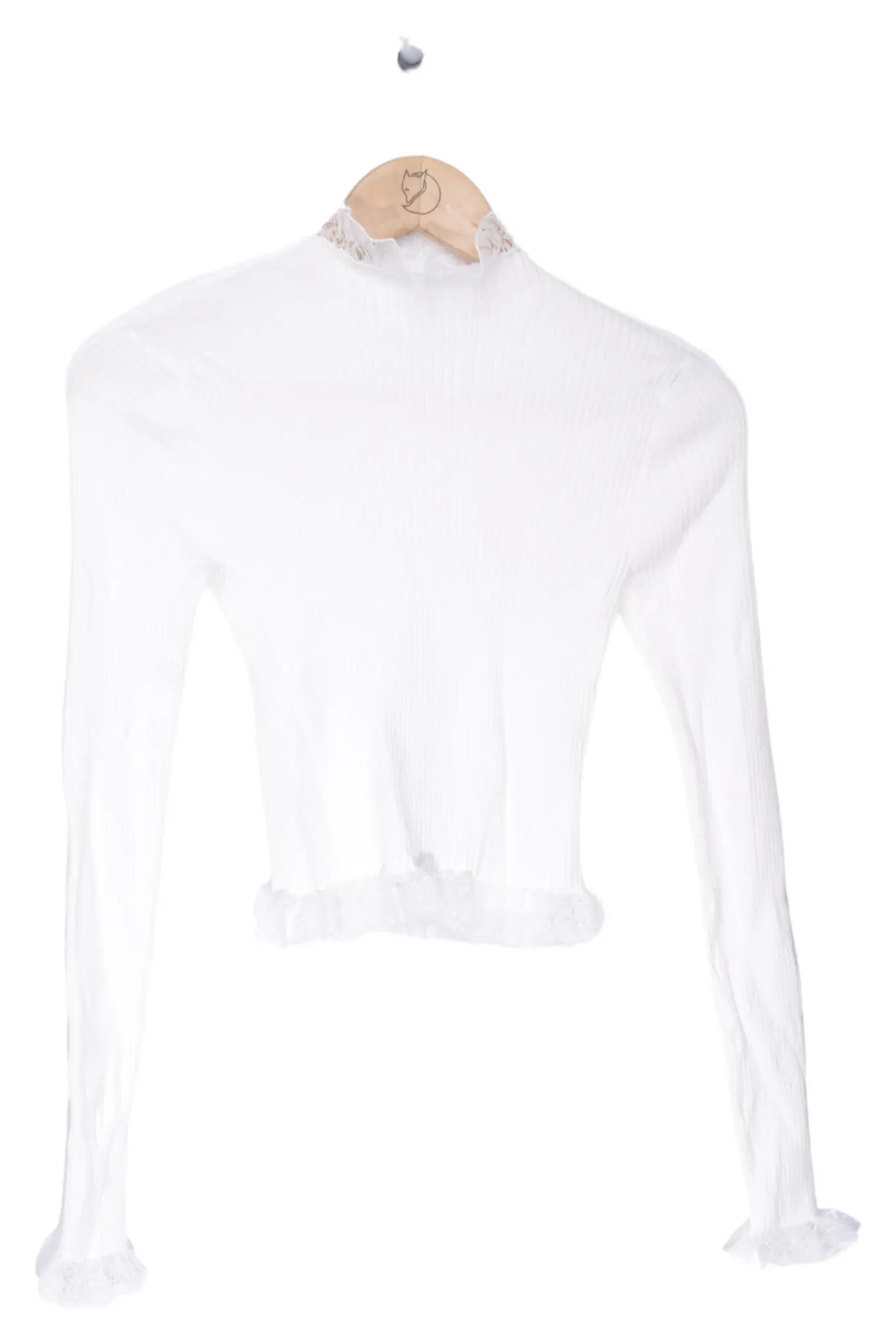 ZARA Langarmshirt Kinder Gr. S Weiß Spitze Klassisch