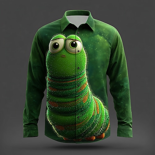 Herren Tiermotiv Insekten Raupe Hemd Knopfhemd Langarm Lustig Outdoor Ferien Frühling Herbst Umlegekragen 3D-Druck Hemden mit Kragen Grün 1# Grün 2# Grün 3# Dunkelgrün Grün