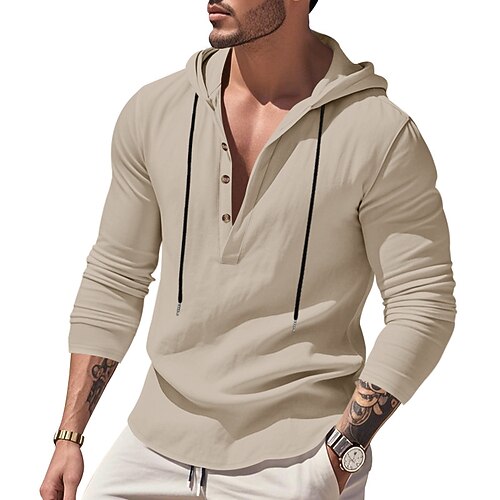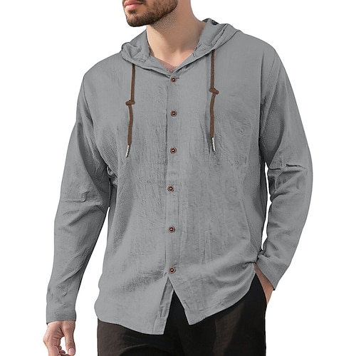 Per uomo Camicia Camicia di lino Camicia Estiva Camicia da Spiaggia Semplice Vacanza Casuale Nero Bianco Blu marino Cachi Manica Lunga Con Cappuccio Primavera Autunno Abbigliamento Coulisse