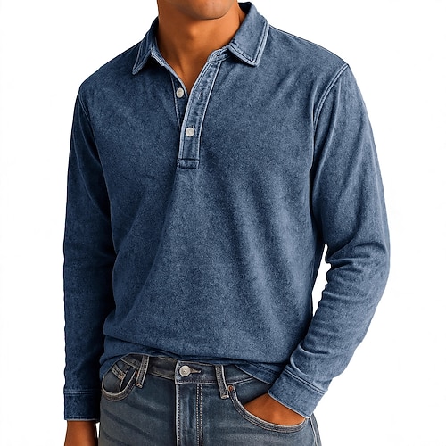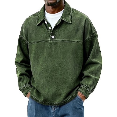 Per uomo Polo in Cotone Casuale Vacanza Classico Manica Lunga Moda Essenziale Tinta unica Semplice Stile Vintage Lavato Inverno Primavera Autunno Tutte le stagioni Vestibilità comoda Nero Verde