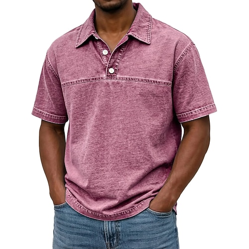 Per uomo Maglia Henley Maglietta Manica Corta Semplice Retrò Vintage Casual Cardigan con Bottoni Lavato Henley Casuale Estate Rosa Blu chiaro Viola Maglietta Henley