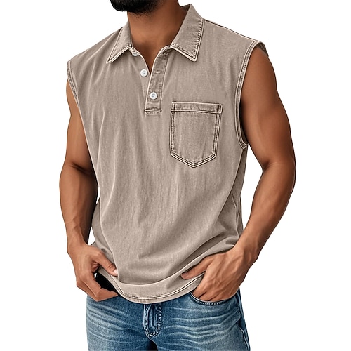 Per uomo Maglietta smanicata Maglietta di cotone Senza Maniche Colletto Polo Estate Primavera Semplice Casual Angosciato Stile Vintage Lavato Casuale Vacanza Streetwear Nero Rosa Viola Maglietta Top