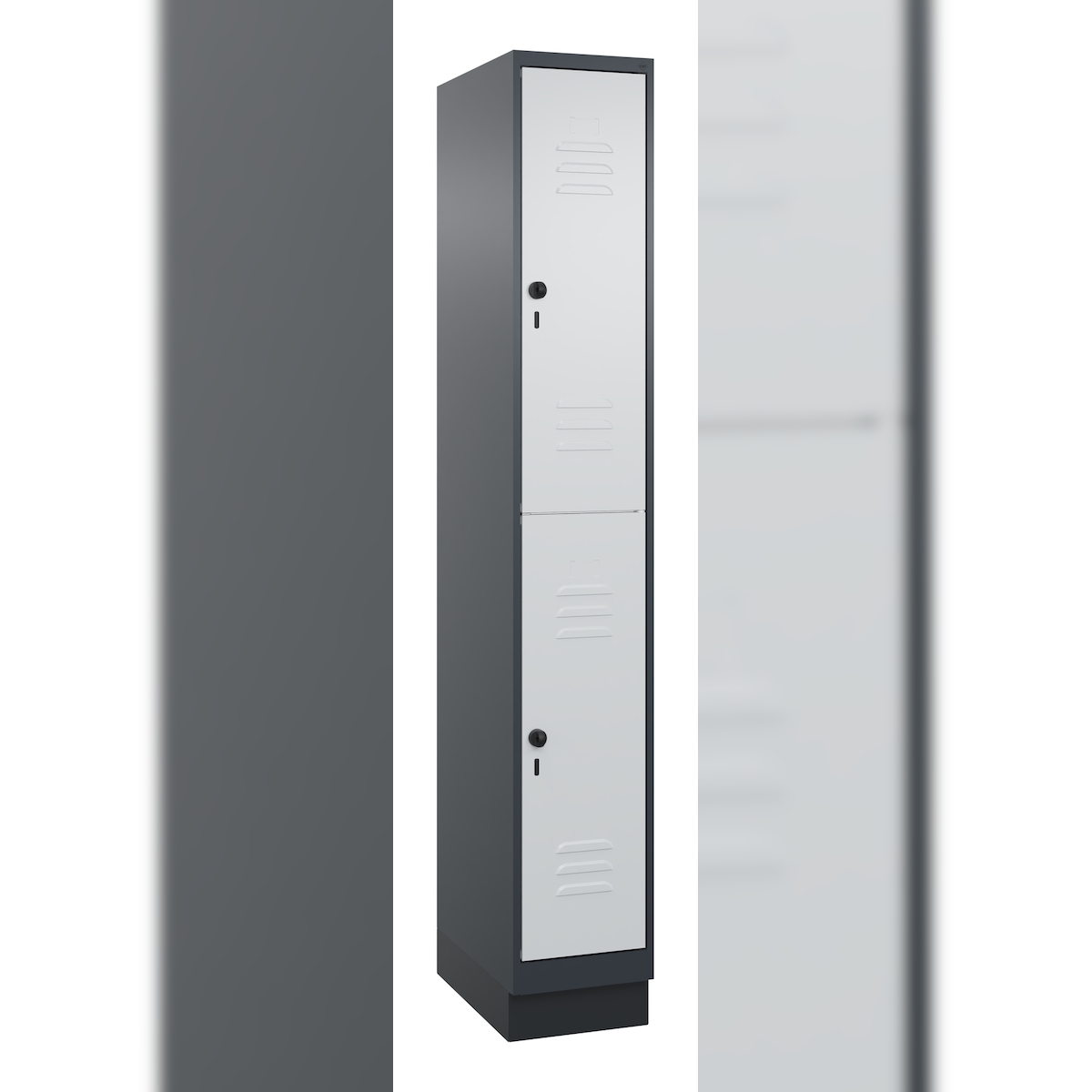 C+P Spind Classic PLUS, Sockel, 2 Abteile, HxBxT 195x30x50cm, Sicherheitsdrehriegel, Anthrazit/Hellgrau von PROREGAL