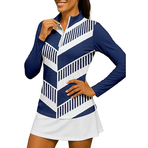 Per donna Geometrico Maglietta sportiva Polo da golf Maglia da tennis Maglietta da tennis Manica Lunga Cerniera Floreale UPF50 Resistente ai Raggi UV Alta elasticità Traspirante Tennis Golf
