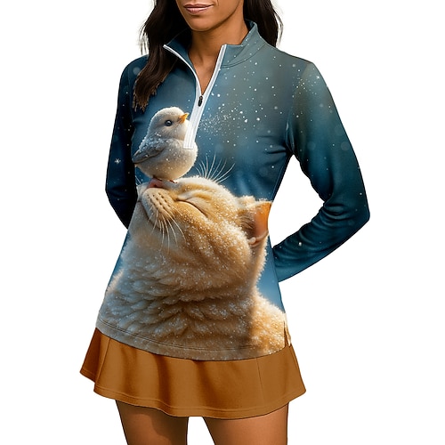 Per donna Animale Gatto Top Maglietta Maglietta sportiva Polo da golf Manica Lunga Cerniera Floreale UPF50 Resistente ai Raggi UV Alta elasticità Traspirante Pallavolo Tennis Golf Collo alla coreana
