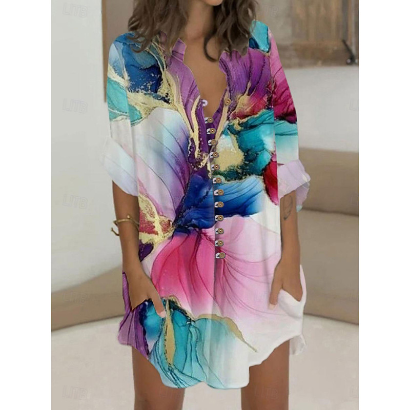 Women's Mini Dress A Line Dress Work Dresses Vacation Casual Party Daily Date Regular Fit Ombre Floral Graphic Long Sleeve Shirt Collar White Summer Spring Fall