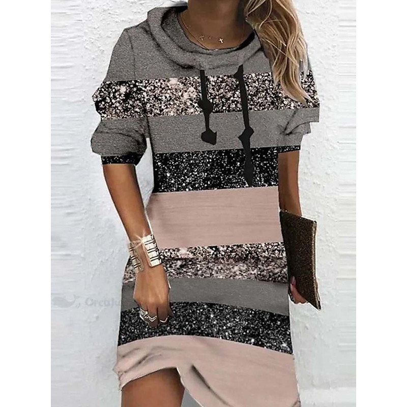 Women's Hoodie Dress Mini Dress Sheath Dress Vacation Casual Boho Daily Sports Going out Loose Fit Plain Long Sleeve Hooded Pink Red Blue Gray Spring Fall Winter Autumn
