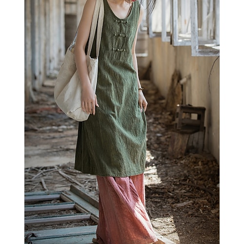 Per donna Verde militare Rosa Blu marino Estate Primavera Abito Midi Abiti in cotone e lino Vestito Casual Abito estivo in cotone Essenziale Moderno Quotidiano Weekend Vestibilità comoda Semplice