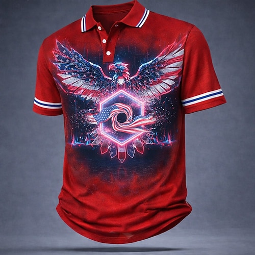 4. Juli 2026 250. Herren Adler Poloshirts Kurzarm Polo-Shirts Hemden mit Kragen Lässig Outdoor Athleisure Knöpfe Frühling Sommer Blau Rote Grau