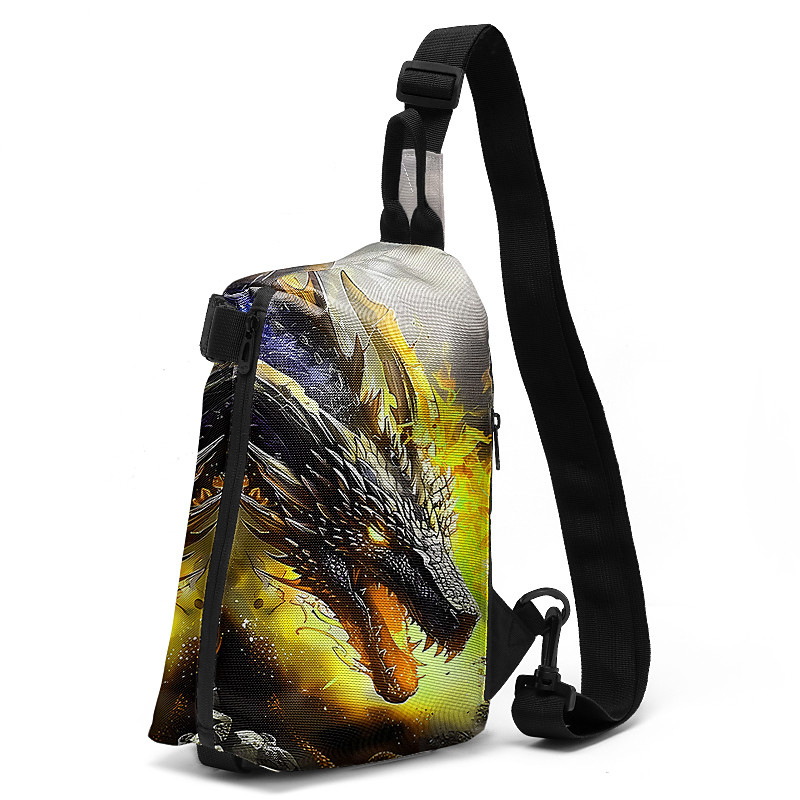Dragon Print Crossbody Sling Bag with Adjustable Strap, Casual Lightweight Chest Bag for Men and Women, Perfect for Travel, Sports, and Outdoor Activities Yellow Blue Orange