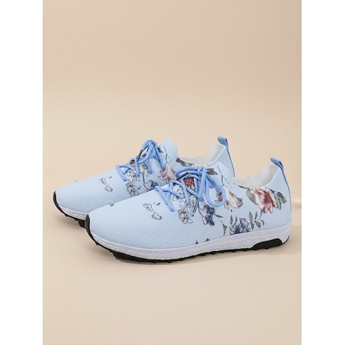 Sneakers da donna in maglia con stampa floreale gialla: scarpe casual leggere e traspiranti con suola antiscivolo ammortizzata, scarpe da passeggio alla moda per viaggi, attività all'aperto e per