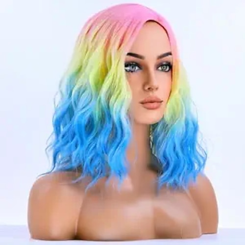 Parrucca di Carnevale Rosa Blu Viola Riccio Ondulato Corto Parrucca sintetica da festival Martedì grasso Parata Capelli per costumi da cosplay per Da donna