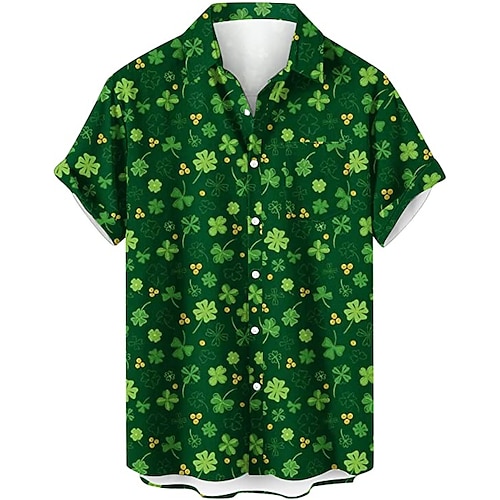 camicia da uomo per il giorno di san patrizio camicia hawaiana estiva stampe grafiche giorno di san patrizio st. giorno di san patrizio trifoglio turndown giallo chiaro verde / nero verde oliva