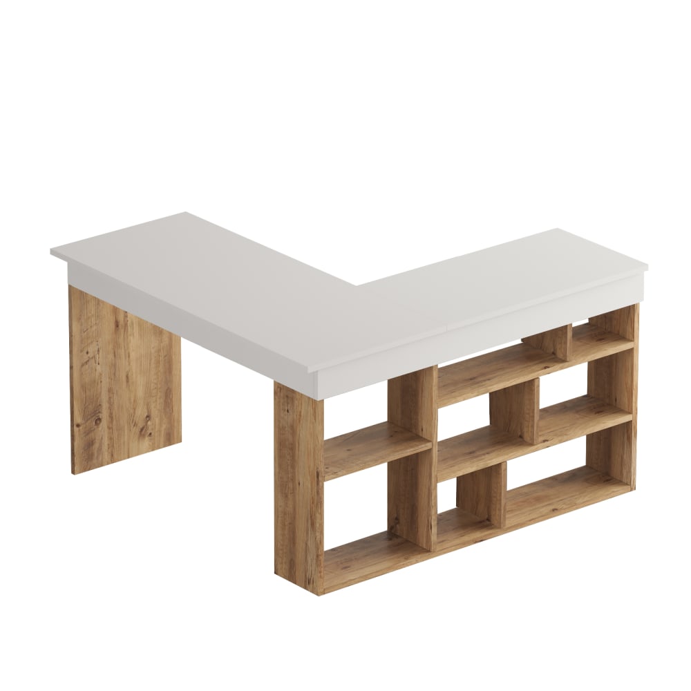Scrivania moderna con ripiani Tywin, 115 cm, pino - bianco