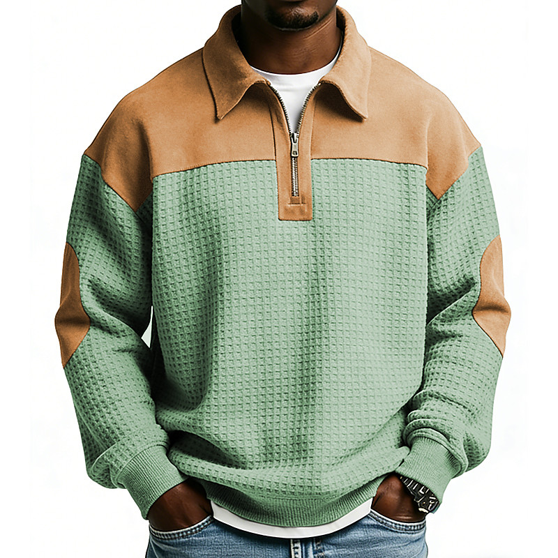 Men's Waffle Polo Shirts Polo Vacation Street Quarter Zip Long Sleeve Fashion Basic Color Block Patchwork Spring Fall Tailored Fit Black Navy Blue Green Grey Light Blue Waffle Polo Shirts